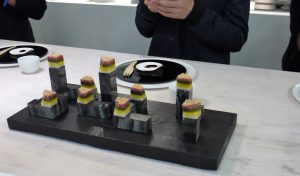 I arrive early and have a chat with designer Shika Tseng who tells me that I am about to experience an immersive and sensory exploration of Taipei, Taiwan’s capital city, through five exquisitely crafted dishes which explore Taipei’s history, landscape, people, lifestyle and future. It will involve taste, touch, sound and smell. There is a table, around which we stand, with ten settings situated in the middle of a vast exhibition hall. People cannot help coming up and taking pictures. I have never eaten in public before. I remember learning at school that Louis XIV did this every day and I wondered how it must have felt, something I am about to find out. A young chap appears at the head of the table with a microphone and welcomes us all. He is to chat throughout the experience and introduces the first dish.